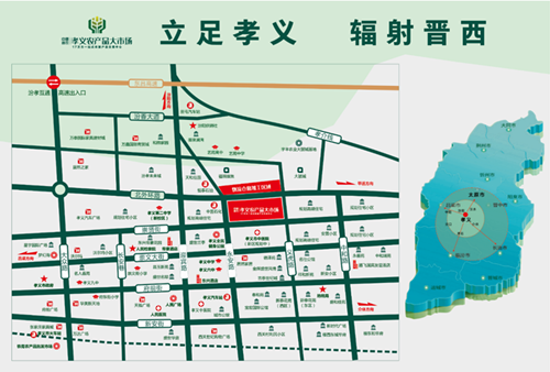 孝義農(nóng)產(chǎn)品大市場(chǎng)是孝義首個(gè)一站式農(nóng)副產(chǎn)品交易中心,是孝義市及周邊規(guī)模最大、品種最全、配套最齊全的現(xiàn)代農(nóng)批市場(chǎng)。