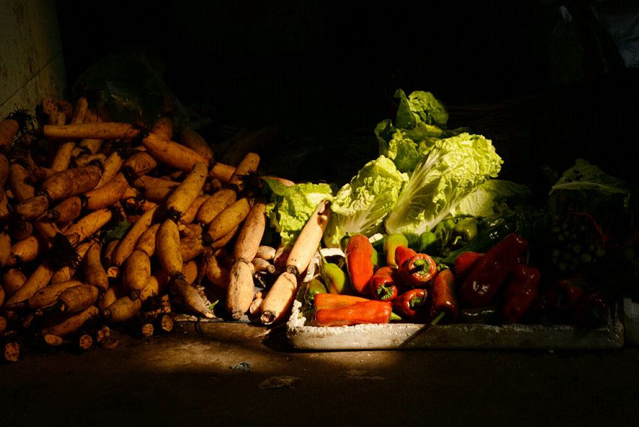 有人喜歡家里附近的菜市場(chǎng),蔬菜擠在一起,紅薯摞成小山,鮮活的海魚,人們挨挨擠擠地?fù)屬?gòu)。有人每到一處旅行地,便要拍菜市場(chǎng),櫻桃紅、紫西蘭花,黃南瓜……每一張都活色生香。