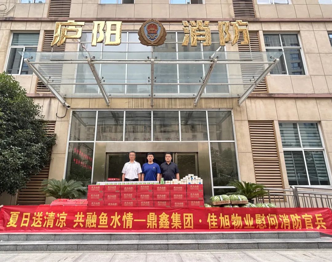 2023年6月13日上午,鼎鑫集團(tuán)副總裁張曉東,佳旭物業(yè)總經(jīng)理吳國(guó)勇一行人等冒著高溫酷暑,來到合肥市廬陽區(qū)消防大隊(duì),送去降暑飲品等清涼慰問物資,向炎炎夏日仍堅(jiān)守崗位的消防官兵送去絲絲清涼。
