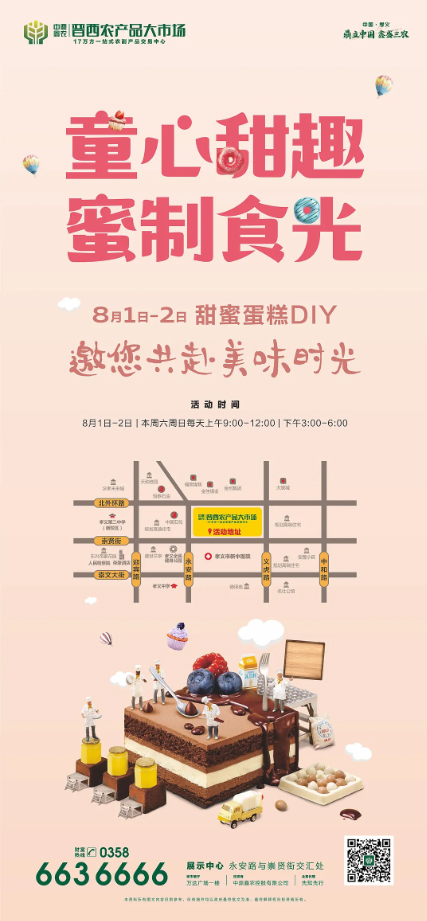 和孩子一起動手做蛋糕是件很幸福的事!加料、攪拌、塑型…不僅造型百變,好玩有趣,而且能培養(yǎng)寶寶的動手力、創(chuàng)造力和專注力,拉近與父母間距離...8 月1日-2 日每天上午 9:00-12:00,下午 3:00-6:00,晉西農(nóng)產(chǎn)品大市場展示中心不見不散!