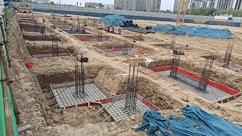 現(xiàn)場實(shí)拍:2#樓獨(dú)立承臺鋼筋綁扎。