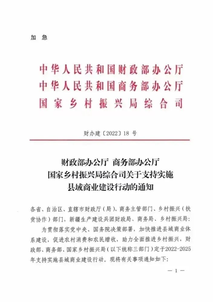 財(cái)政部、商務(wù)部、國家振興局關(guān)于支持實(shí)施縣域商業(yè)建設(shè)行動的通知