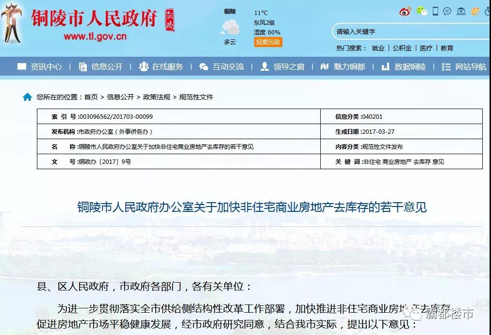 2017年3月27日,銅陵發(fā)布非住宅商業(yè)房地產(chǎn)去庫存新政。其中提出:激勵(lì)社會資本購買或租賃庫存非住宅商業(yè)房地產(chǎn),給予適度財(cái)政補(bǔ)貼。