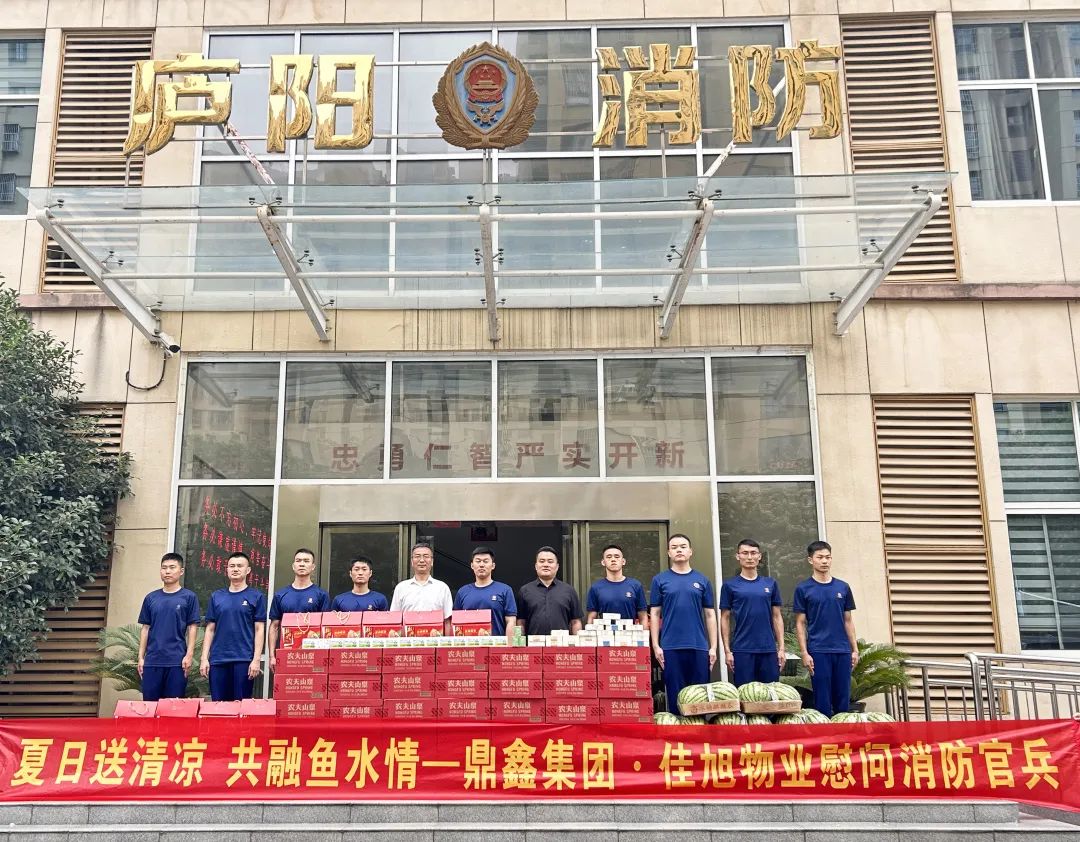 2023年6月13日上午,鼎鑫集團(tuán)副總裁張曉東,佳旭物業(yè)總經(jīng)理吳國(guó)勇一行人等冒著高溫酷暑,來到合肥市廬陽區(qū)消防大隊(duì),送去降暑飲品等清涼慰問物資,向炎炎夏日仍堅(jiān)守崗位的消防官兵送去絲絲清涼。